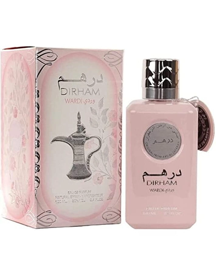 Dirham Wardi marki Ard Al Zaafaran to perfumy dla kobiet. Nutami głowy są Róża, Kwiat pomarańczy, Gruszka i Czarna porzeczka; nutami serca są Irys, Pralina i Jaśmin; nutami bazy są Paczula, Wanilia i Fasolka tonka.