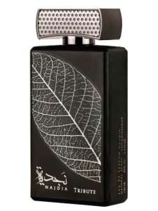 Najdia Tribute marki Lattafa Perfumes to skórzane perfumy dla kobiet i mężczyzn. Najdia Tribute został wydany w 2021 roku. Nutami głowy są Imbir, Jabłko, Mandarynka i Bergamotka; nutami serca są Liść fiołka, Drzewo gwajakowe, Szafran i Cedr; nutami bazy są Skóra, Ambra, Agar (oud) i Drzewo sandałowe.