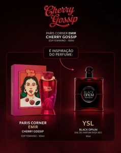 Cherry Gossip to zmysłowy zapach o wyraźnym charakterze gourmand, która łączy soczystą wiśnię z kremową słodyczą i subtelną nutą kawy. To intrygująca kompozycja dla osób, które lubią nietuzinkowe, słodko-owocowe zapachy z eleganckim, otulającym wykończeniem. Już w otwarciu wyczuwalna jest intensywna, dojrzała wiśnia, wzbogacona akordem