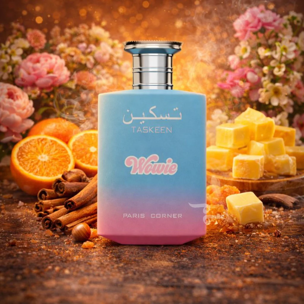 Taskeen Wowie marki PARIS CORNER to kwiatowo - owocowo - gourmand perfumy dla kobiet. Taskeen Wowie został wydany w 2025 roku. Nutami głowy są Mandarynka, Pomarańcza i Aldehydy; nutami serca są Cynamon, Rum i Irys; nutami bazy są Masło, Karmel i Fasolka tonka.